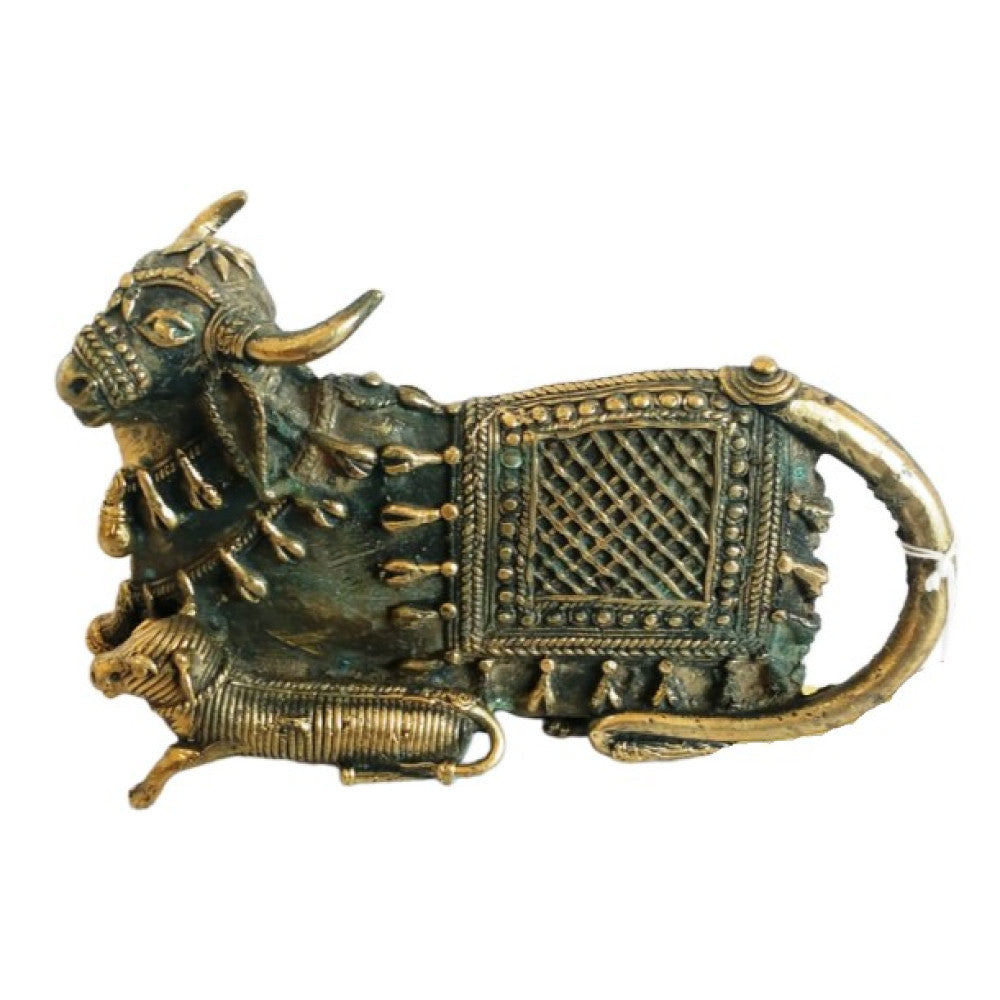 These beautiful pieces of Bastar Dokra art depicting Cow along with Calf will sure decorate your living room in a traditional yet trendy way or would be a perfect classy gift item for your loved ones. Bastar Dokra is known for its rustic yet intricate designs which has its origin in the Bastar region of Chhasttisgarh where these have been crafted by the local people for more than thousands of years.