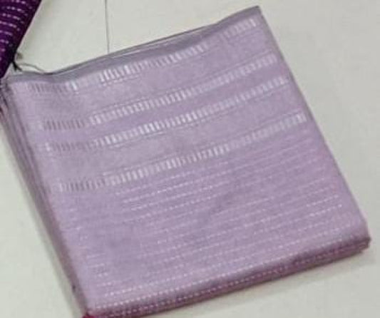 "Sophisticated and striking, this grey and purple Champa silk saree showcases a graceful fusion of subtle charm and royal hues, finished with a contrasting border that exudes timeless elegance."