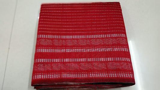 "Graceful and captivating, this red Champa silk saree dazzles with its rich contrast and lustrous weave — a perfect blend of tradition and timeless style."