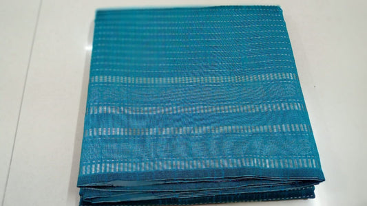 "Delicate yet bold, this sky blue and navy blue Champa silk saree features a graceful interplay of hues, enhanced by its rich texture and classic charm — perfect for elegant occasions."