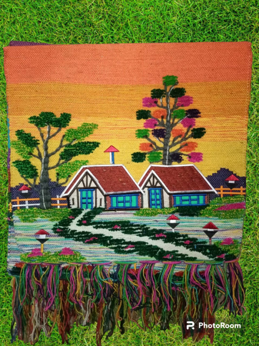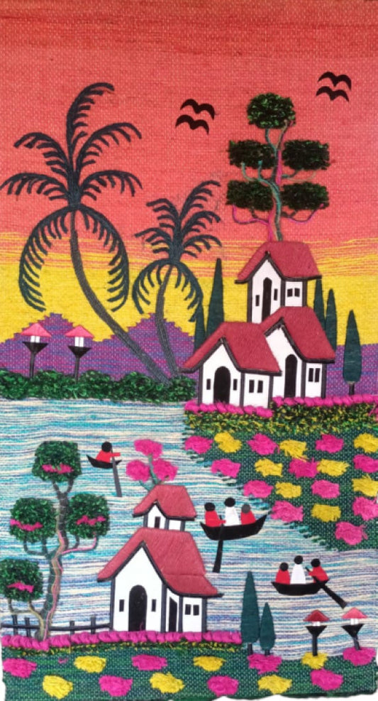 Transform your space with the Ghazipur Handmade Jute Wall-Hanging depicting Sweet Town. Artisan-crafted, this charming piece evokes a whimsical village with intricate detailing. The delightful scene, rendered in natural textures, adds a touch of quaint elegance to your decor, creating a captivating and heartwarming focal point for any room.