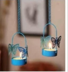 Hanging beautiful Butterfly Tealight Candle Holder with Chain Metal Material, Design Home Decoration Festival Occasion Combo Pack (6 Hanging Butterfly Tealights + 6 Wax Candles Free). Wall Hanging Home Decor Butterfly Tealight Candle Holder Combo Pack These tealight holders are gorgeous and will add a touch of sophistication to any event, your room, balcony, office space, wedding, and home decor.