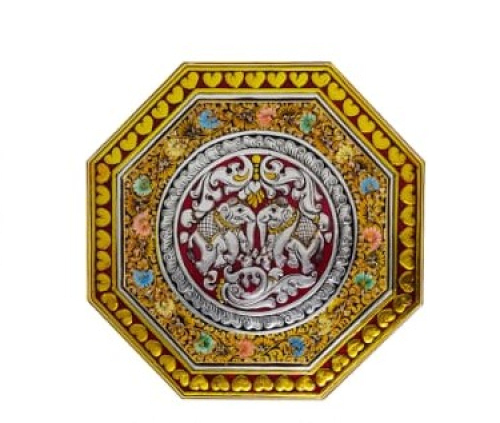 This wall hanging is a stunning and intricately crafted piece of traditional Indian art. Handmade by skilled artists from the Kinhal village in Karnataka, it features a beautiful blend of vibrant colours and designs. Made from eco-friendly materials such as wood and vegetable dyes, the wall hanging depicts various motifs inspired by nature & folklore