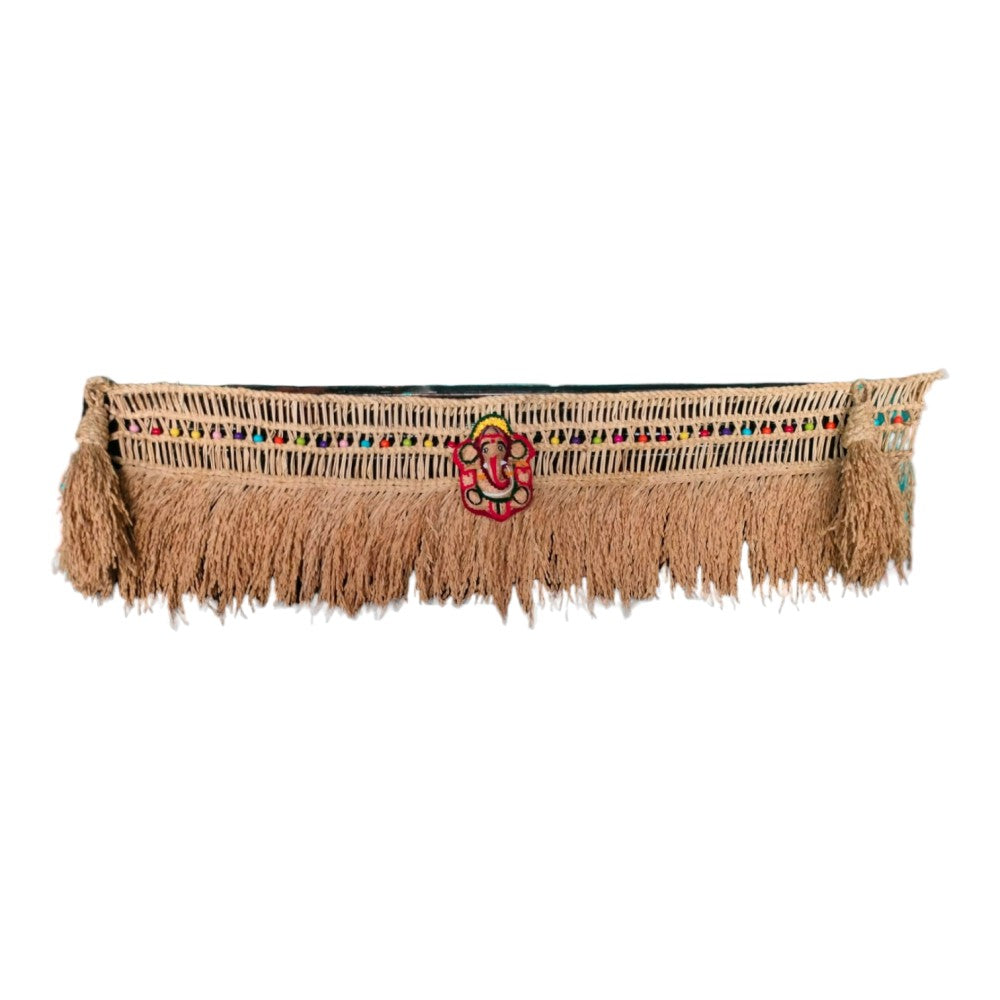 The Natural Paddy Toran with Lord Ganesha is a traditional Indian decorative garland made from natural paddy (rice) grains. It features an intricate design that often includes the revered image of Lord Ganesha, the Hindu deity known for removing obstacles and bringing good fortune. This toran is typically hung above doorways during festivals and special occasions to welcome prosperity and positive energy into the home. The use of natural materials symbolizes abundance and a connection to nature, while the presence of Lord Ganesha adds a spiritual element, making it a meaningful and auspicious decoration.
