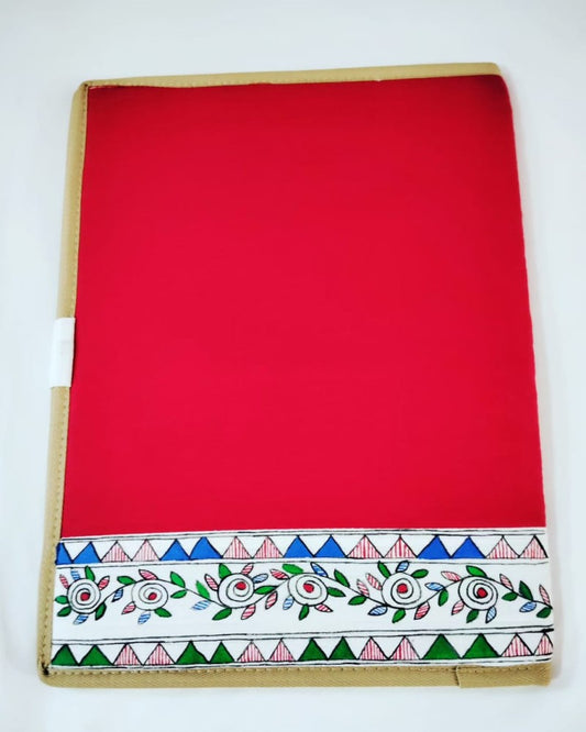 A Madhubani file folder showcases traditional Indian folk art with hand-painted motifs of nature, animals, and geometric patterns. Made from eco-friendly materials, it combines vibrant colors and intricate designs. Ideal for organizing documents, this unique folder adds a touch of cultural elegance to both professional and personal settings.