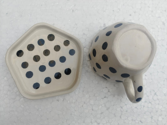 Add elegance to your table with this handmade Blue Pottery Cup Coaster featuring a stunning Black Bindu Print design.