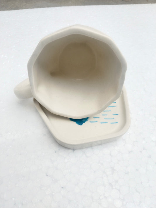 Bring monsoon charm to your table with this handmade Blue Pottery Cup Coaster featuring a beautiful Rain Print design.