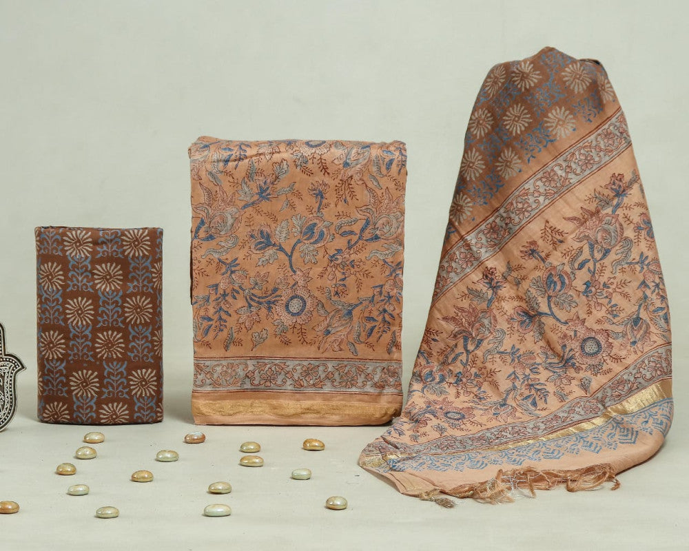 Bagru Hand Block Chanderi Silk Dress material Style 34 - Gi Heritage