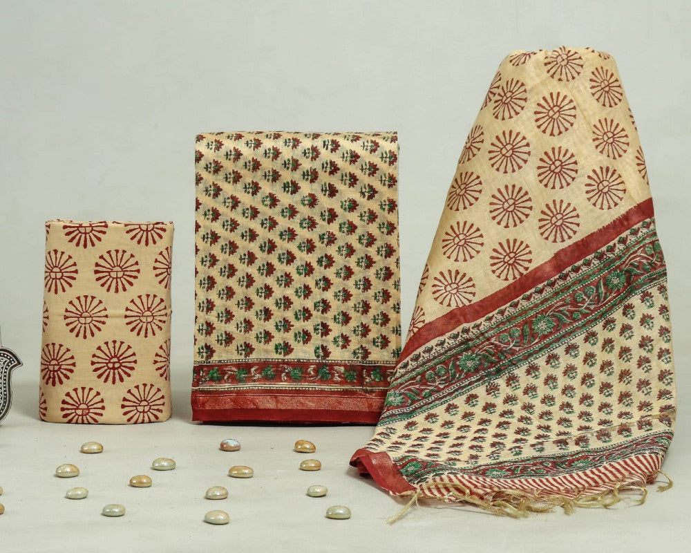 Bagru Hand Block Chanderi Silk Dress material Style 38 - Gi Heritage