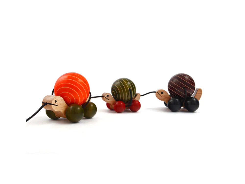 The Tortoise Train of Channapatna Toys is a charming and handcrafted wooden toy train originating from Channapatna, India. This traditional toy features a whimsical design, with a tortoise-shaped engine and colorful carriages. Each piece is meticulously crafted by skilled artisans using eco-friendly materials and non-toxic paints. The Tortoise Train embodies the rich heritage of Channapatna's toy-making tradition, combining aesthetics with sustainability. It serves as both a delightful plaything and a symbol of Indian craftsmanship, making it a cherished addition to any toy collection.