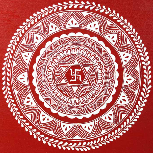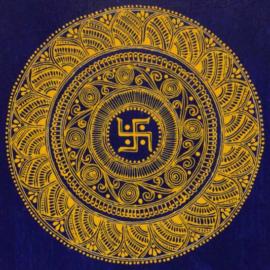 "Beautifully handcrafted Aipan Pooja Thali featuring traditional Kumaoni designs. Perfect for daily rituals, festive occasions, and spiritual gifting, it brings a touch of Uttarakhand’s rich heritage to your worship space."