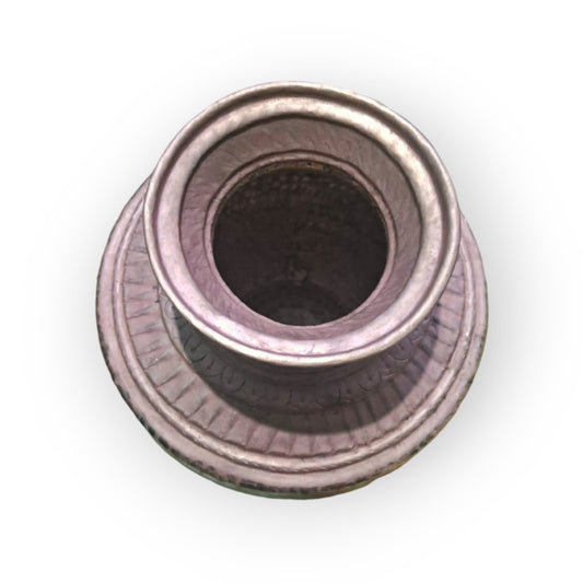 The Uttarakhand Tamata Surahi with Lid is an exquisite traditional vessel crafted in the Himalayan region. Made from locally sourced materials, this elegant container features a distinctive design and comes with a lid. It serves both functional and decorative purposes, embodying the cultural richness of Uttarakhand's craftsmanship.
