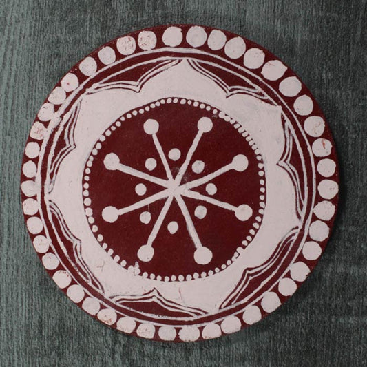 "Beautifully handcrafted Aipan Pooja Thali featuring traditional Kumaoni designs. Perfect for daily rituals, festive occasions, and spiritual gifting, it brings a touch of Uttarakhand’s rich heritage to your worship space."