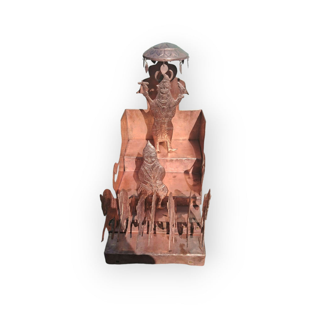 Uttarakhand's Tamata Krishna & Arjun on Chariot is a cultural spectacle portraying the divine duo Lord Krishna and Arjuna on an ornate chariot. This traditional representation, often seen in local festivals, symbolizes the essence of devotion and mythology, captivating spectators with its religious significance and vibrant artistic expressions.