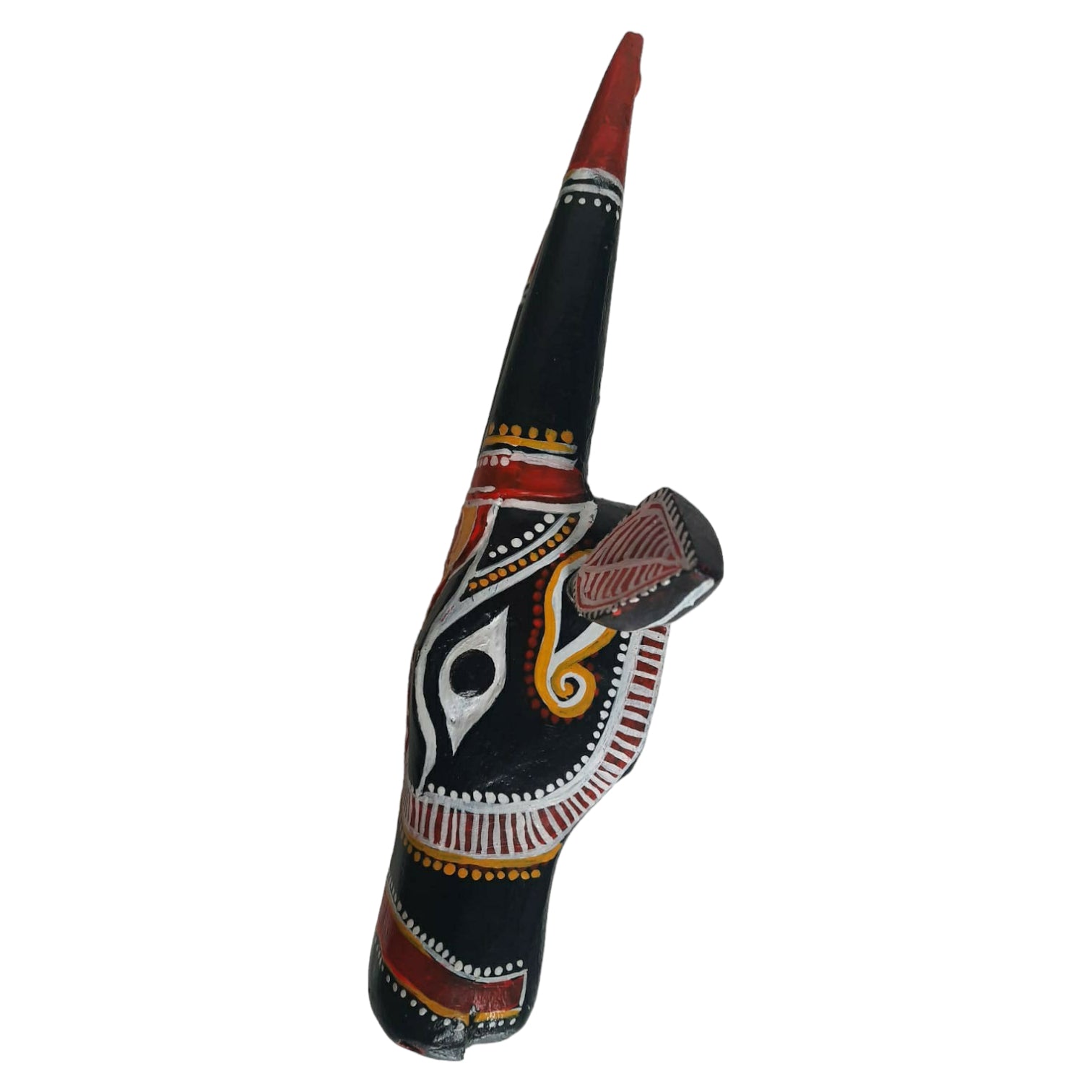 The Uttarakhand Apian Cow Head wall hanging is a unique and culturally rich artisanal piece, reflecting the traditional craftsmanship of the region. Handcrafted by skilled artisans in Uttarakhand, India, this exquisite wall decor features a meticulously detailed cow head, showcasing the sacred significance of the Apian breed in Hindu culture. The use of indigenous materials and vibrant colors adds to its charm, making it a distinctive and meaningful addition to any space, harmonizing tradition and artistry.