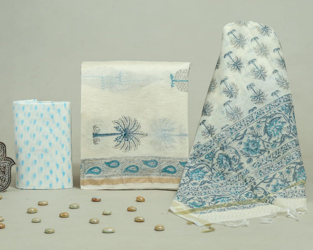Bagru Hand Block Chanderi Silk Dress material Style 46