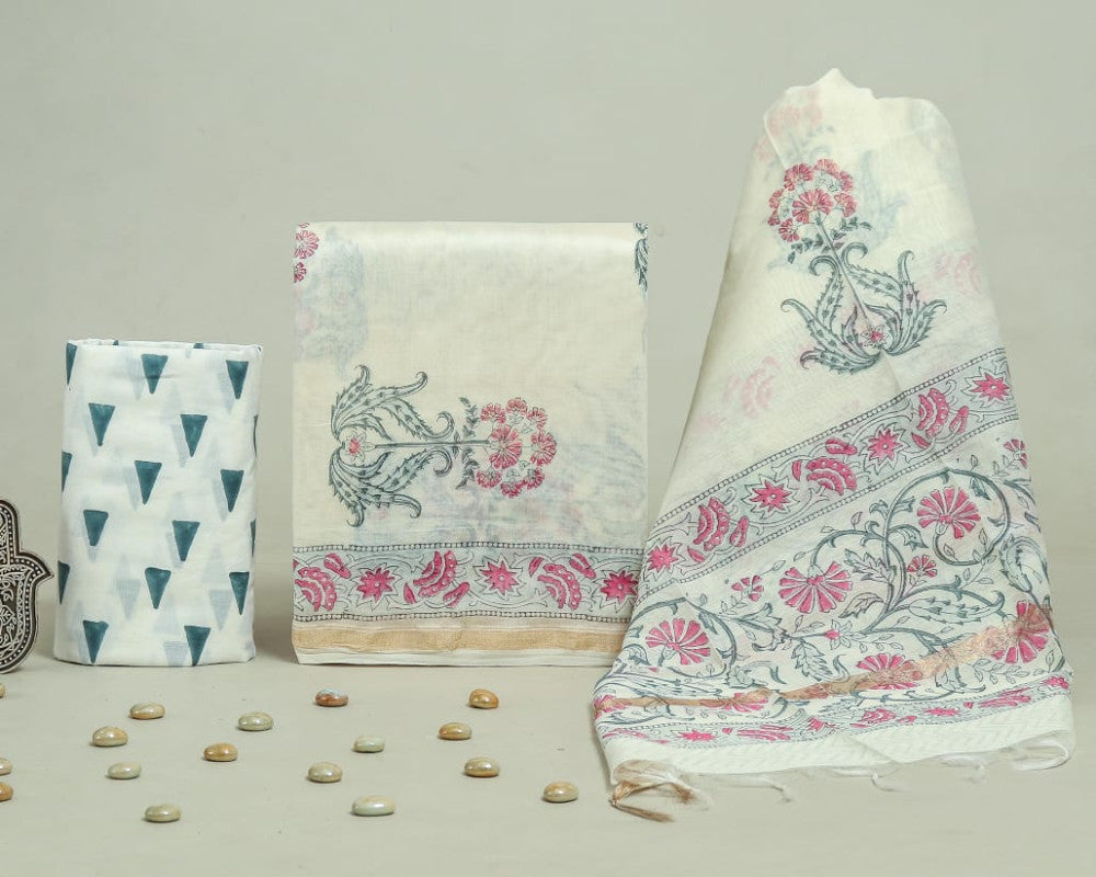 Bagru Hand Block Chanderi Silk Dress material Style 57 - Gi Heritage