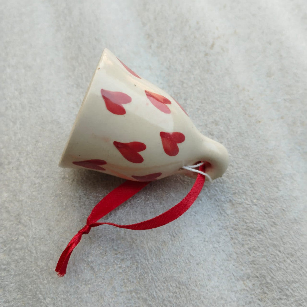 Blue Pottery Hanging Bell Heart Shape 3 Inch