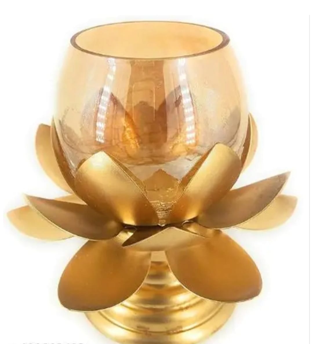 Lotus Show Candle Tealight Holder Set of 2 Pcs With 2 Glass Plus 2 Wax Candle Iron Made