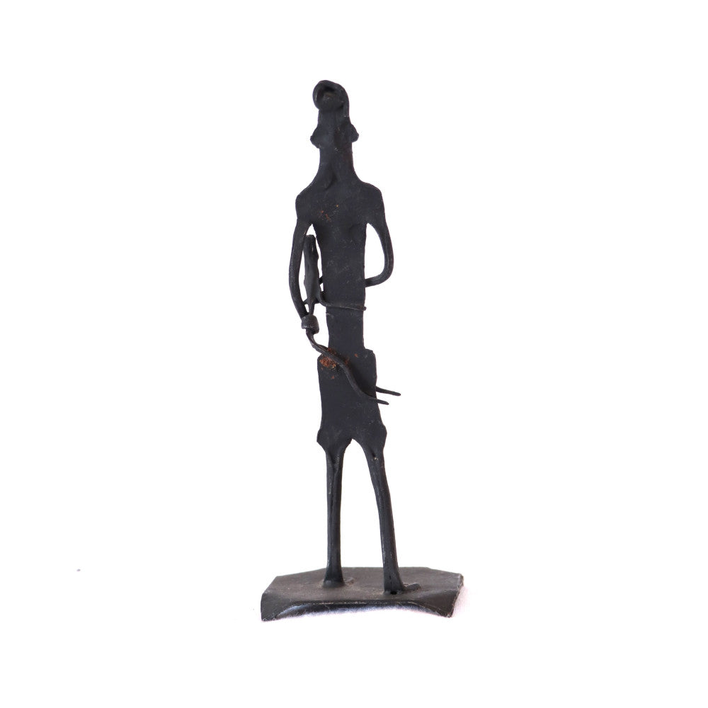 The "Maadin with Child" sculpture is a remarkable piece of Bastar Iron Art, hailing from the skilled artisans of the Bastar region in India. Crafted from iron, this artwork depicts a mother (Maadin) tenderly holding her child. It beautifully captures the essence of maternal love and bonding, showcasing the intricate craftsmanship of Bastar artisans. This sculpture is a testament to the rich cultural heritage and artistic tradition of the region, making it a cherished and meaningful art piece.