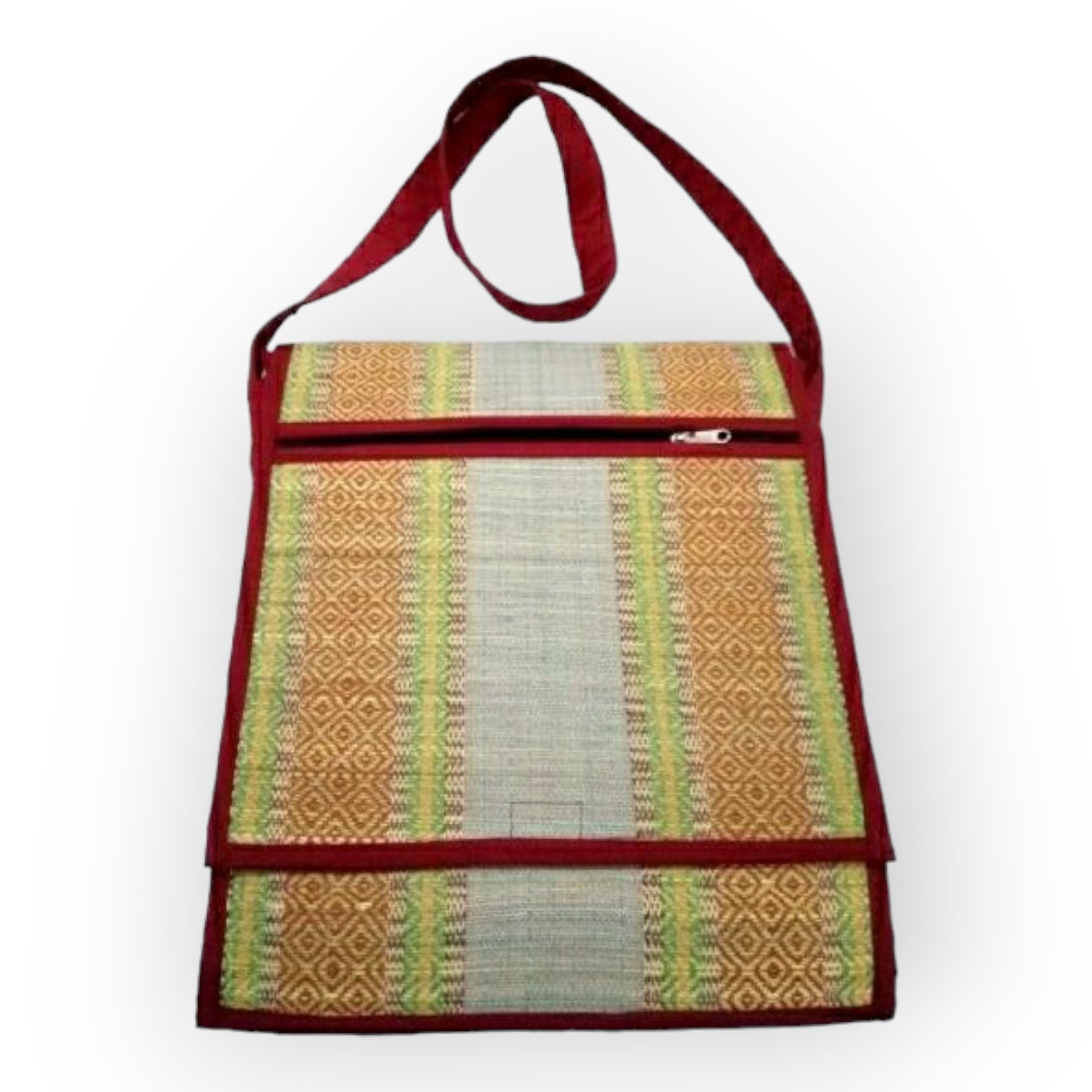 The Madur Kathi Office Side Bag in Maroon combines traditional craftsmanship with contemporary utility. Handcrafted from Madur Kathi, a sustainable material made from reeds, it exudes elegance and eco-friendliness. The rich maroon hue adds a touch of sophistication, perfect for professional settings. With ample space for essentials, including a laptop sleeve and multiple compartments, it seamlessly blends style with functionality. Ideal for the modern professional seeking sustainable yet stylish accessory solutions.