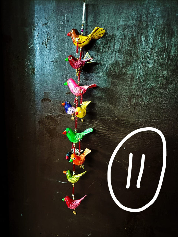 Handmade paper Mache wall hanging birds painted with acrylic colours. Raw Material used *Newspaper or any other waste paper- the basic raw material for this craft which is used to prepare paper pulp.