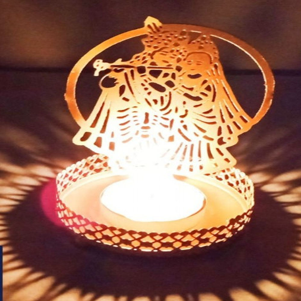Illuminate your space with the divine love of Radha Krishanji with our Iron Shadow Diya. Crafted from durable iron and featuring a serene Radha Krishanji silhouette, this diya adds a spiritual touch to your space while casting enchanting shadows when lit.